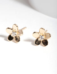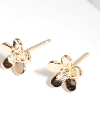 Gold Plated Sterling Silver Flower Cubic Zirconia Stud Earrings