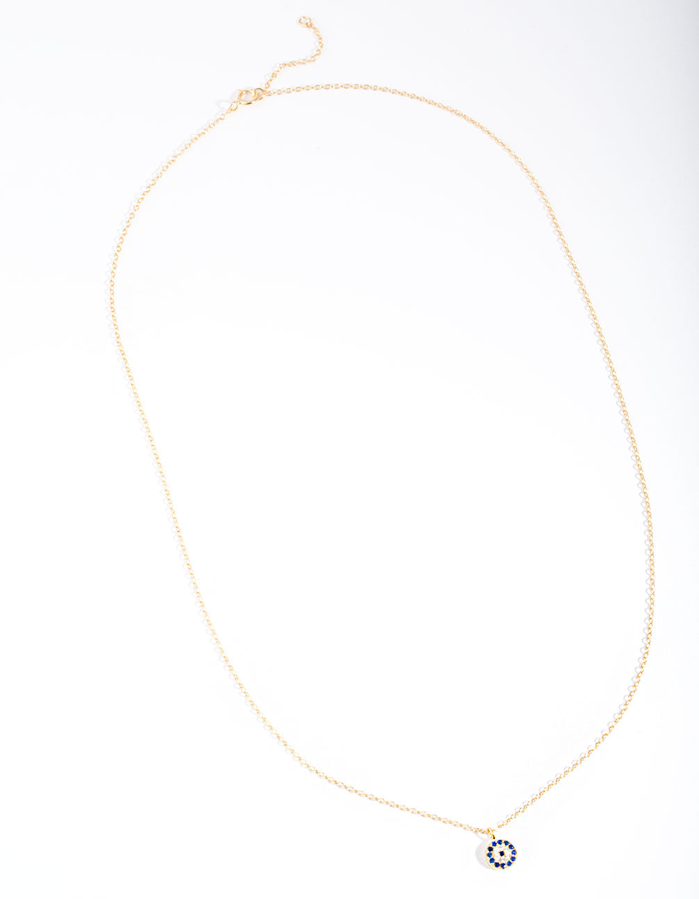 Round out your jewellery collection with gold plated sterling silver jewellery. These treasures boast a sterling silver base with premium plating and classic designs to suit your everyday outfits. This necklace is perfect for layering and features a stunning evil eye disc design.