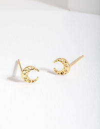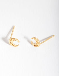 Gold Plated Sterling Silver Filigree Moon Stud Earrings